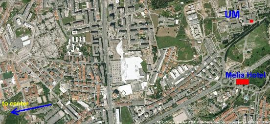 From the center of Braga the University’ campus and Melia Hotel’ area are easily reachable by walking (~30 min) or by bus lines: 7 (S. Mamede/Celeirós), 24 (Gualtar/Sequeira) both passing through Largo Sra-a-Branca; 43 from train station to the university campus; and line 2 to Bom Jesus with stops at Av. João XI and right in from the Melia Hotel |