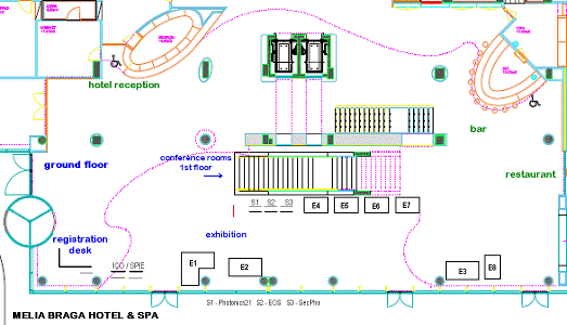 The main conference venue is at the Universidade do Minho' Campus de Gualtar in Braga, and at Meliã Braga Hotel & Spa. The University of Minho, founded in 1973, is one of the then named "New Universities" that, at that time, deeply changed the landscape of higher education in Portugal. Located in the region of Minho, known for its significant economic activity and by the youth of its population, University of Minho has played the role of development agent in the region. The level of the scientific, technological and cultural activity of the University has granted its international recognition. Its students finish their degrees and diplomas with a universal perspective, acquiring a rich knowledge and experience that qualifies them over a broad range of competences for their professional activity, and assimilate this reality. The reputation of University of Minho is reinforced by demonstrative projects, namely: formats the introduction of teaching methodologies, the offer of teaching typologies that address new audiences, the configuration of innovative interfaces, consistent with the scientific structure, and subject to entrepreneurial management." The Hotel & Spa Meliã Braga is a new and only 5* hotel in Braga. Is located 5 to 10 minutes walk to the University of Minho campus in Braga at the base of Bom Jesus hill and near the jogging trails and open soccer and sports fields, Aerial view of Braga (UM and Hotel Melia Braga area) and conference rooms: |