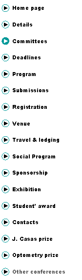 Program Committee: Amit Garg (India) Anand Krishna Asundi (Singapore) Angel Augier Calderin (Cuba) Angela M. Guzman (OSA, Colombia) Clementina Timus (Romania) Efraín Solarte Rodriguez (RCO, Colombia) Eric Rosas (RIAO & AMO, Mexico) Gonçalo Figueira (Portugal) Hai-Ning Cui (China) Humberto Michinel (Spain) João Manuel Tavares (Portugal) Joaquim Carneiro (Portugal) Jose Benito Vazquez-Dorrio (Spain) José Figueiredo (Portugal) José Luis Paz (CTOV, Venezuela) José Manuel Baptista (Portugal) José R. Salcedo (Portugal) José Silva Gomes (Portugal) Luis Miguel Bernardo (Portugal) Kim Chew Ng (Australia) Maria Fernanda Ruiz Gale (Argentina) Mário Vaz (Portugal) Marta Ramos (Portugal) Maxim Tomilin (Russia) Mikiya Muramatsu (Brazil) Monica Landau (Argentina) Orlando Frazão (Portugal) Paulo Tavares (Portugal) Pedro Andrés (Spain) Radu Chisleag (Romania) Rogério Tavares (Portugal) Tomas Catunda (Brazil) Sandra Franco (Portugal) Vasco Teixeira (Portugal)